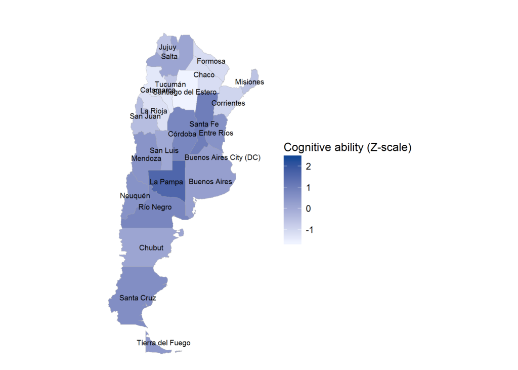 Analyses of the relationships between cognitive ability, socioeconomic outcomes, and European ancestry were carried out at multiple levels in Argentina: individual (max. n = 5,920), district (n = 437), municipal (n = 299), and provincial (n = 24). Socioeconomic outcomes correlated in expected ways such that there was a general socioeconomic factor (S factor). The structure of this factor replicated across four levels of analysis, with a mean congruence coefficient of .96. Cognitive ability and S were moderately to strongly correlated at the four levels of analyses: individual r=.55 (.44 before disattenuation), district r=.52, municipal r=.66, and provincial r=.88. European biogeographic ancestry (BGA) for the provinces was estimated from 25 genomics papers. These estimates were validated against European ancestry estimated from self-identified race/ethnicity (SIRE; r=.67) and interviewer-rated skin brightness (r=.33). On the provincial level, European BGA correlated strongly with scholastic achievement-based cognitive ability and composite S-factor scores (r’s .48 and .54, respectively). These relationships were not due to confounding with latitude or mean temperature when analyzed in multivariate analyses. There were no BGA data for the other levels, so we relied on %White, skin brightness, and SIRE-based ancestry estimates instead, all of which were related to cognitive ability and S at all levels of analysis. At the individual level, skin brightness was related to both cognitive ability and S. Regression analyses showed that SIRE had little detectable predictive validity when skin brightness was included in models. Similarly, the correlations between skin brightness, cognitive ability, and S were also found inside SIRE groups. The results were similar when analyzed within provinces. In general, results were congruent with a familial model of individual and regional outcome differences.