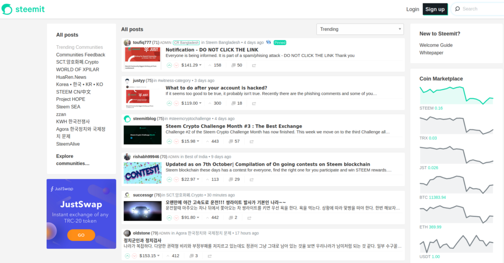 | steemit | steemit.com | 14,600 | 21,421 | 6,821 | 5 |