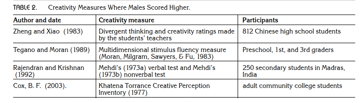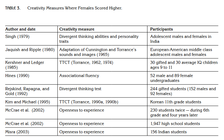Baer, J., & Kaufman, J. C. (2008). Gender differences in creativity. The Journal of Creative Behavior, 42(2), 75-105.