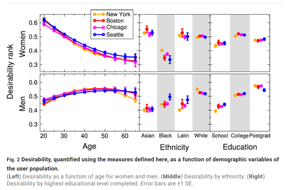 Finally, we can note that there are data about the attractiveness of women. Since rapists target attractive women, the numbers above are again somewhat off because White women are older than the other groups, especially than Hispanics and Asians (recent immigrants are younger). Still, we would also expect rapists to prefer hotter women. And here’s the hotness of women as rated by attention on OKCupid: