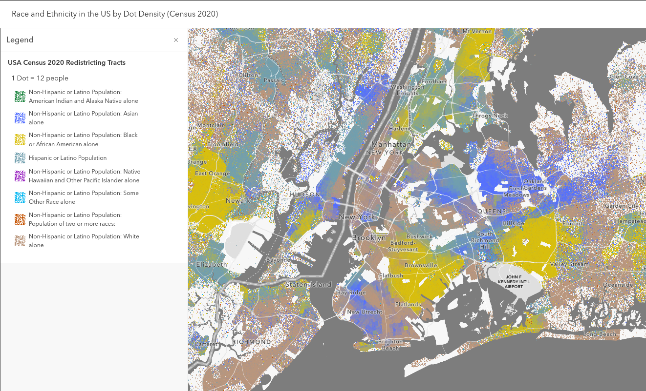 The question of what values we should expect is more tricky. There are two extremes we can assume. In the first case, we could assume that everybody has an equal chance of attacking anyone else, as if the country lived in perfect racial diversity. In this scenario, when a would-be rapist walks out the door, he has an equal chance of encountering a woman of any race considering the population fractions of each. Thus, a Black man has about 13% chance of encountering a Black woman and about 60% of encountering a White woman. Similarly for White men. Under this assumption, the results seem odd. Black women are mostly attacked by Blacks despite only 13% of the male population being Black. Thus, it would seem that Blacks men prefer Black women and go out of their way to find them. But then again, we also know this assumption is crazy. Here’s how the real racial distribution looks like in New York, for instance: