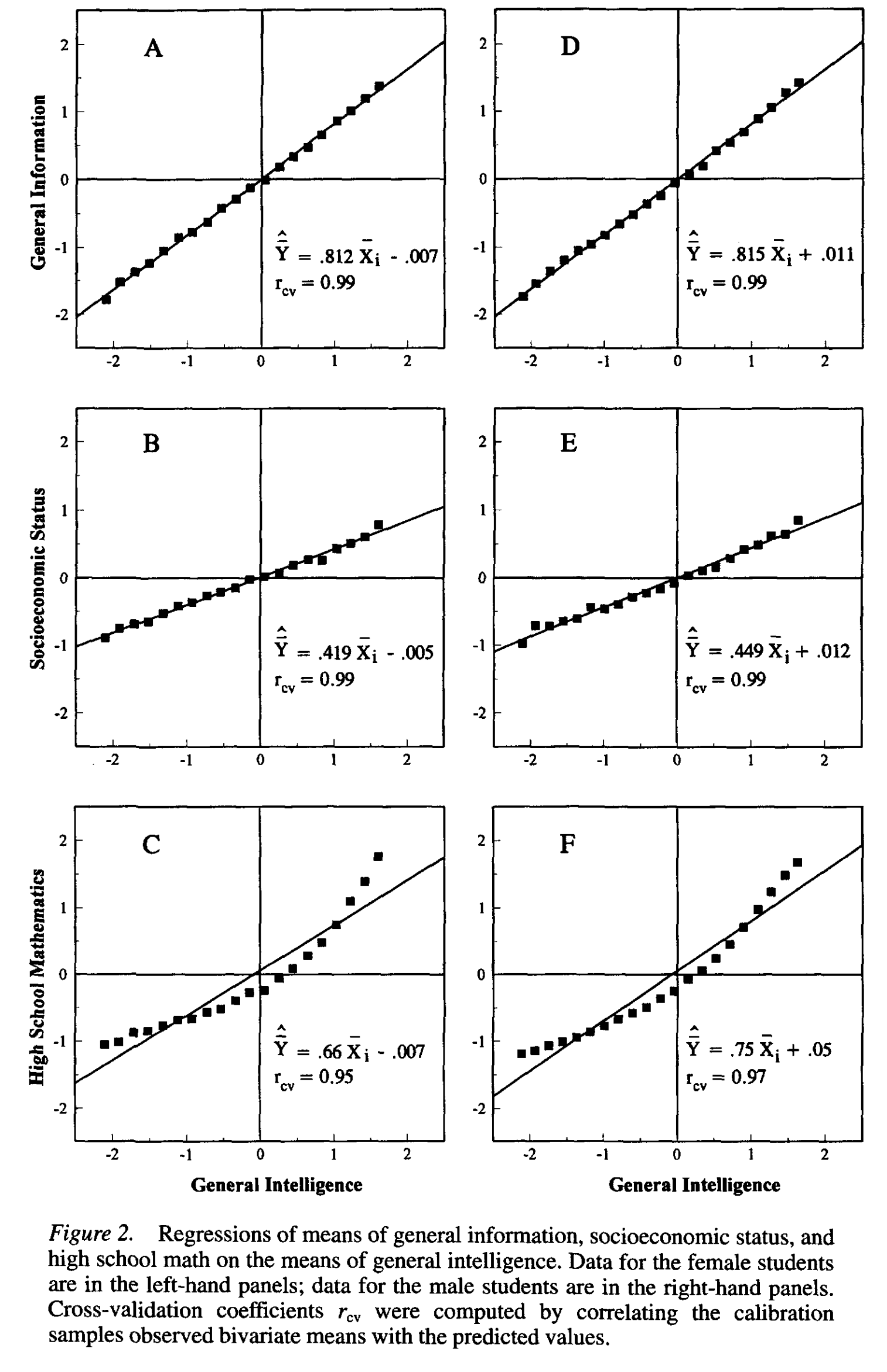 Notice the slightly upwards trend for intelligence and grades. The other regressions are basically linear, as usually found. Again, see my prior post which has many more studies.