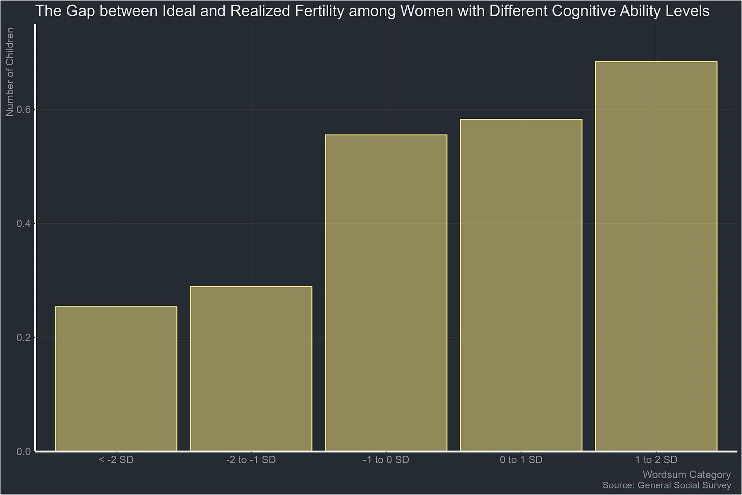 About 5% of women intended to be childless, but about 15% of them ended up without children. A travesty. There’s a human capital angle to this as well: