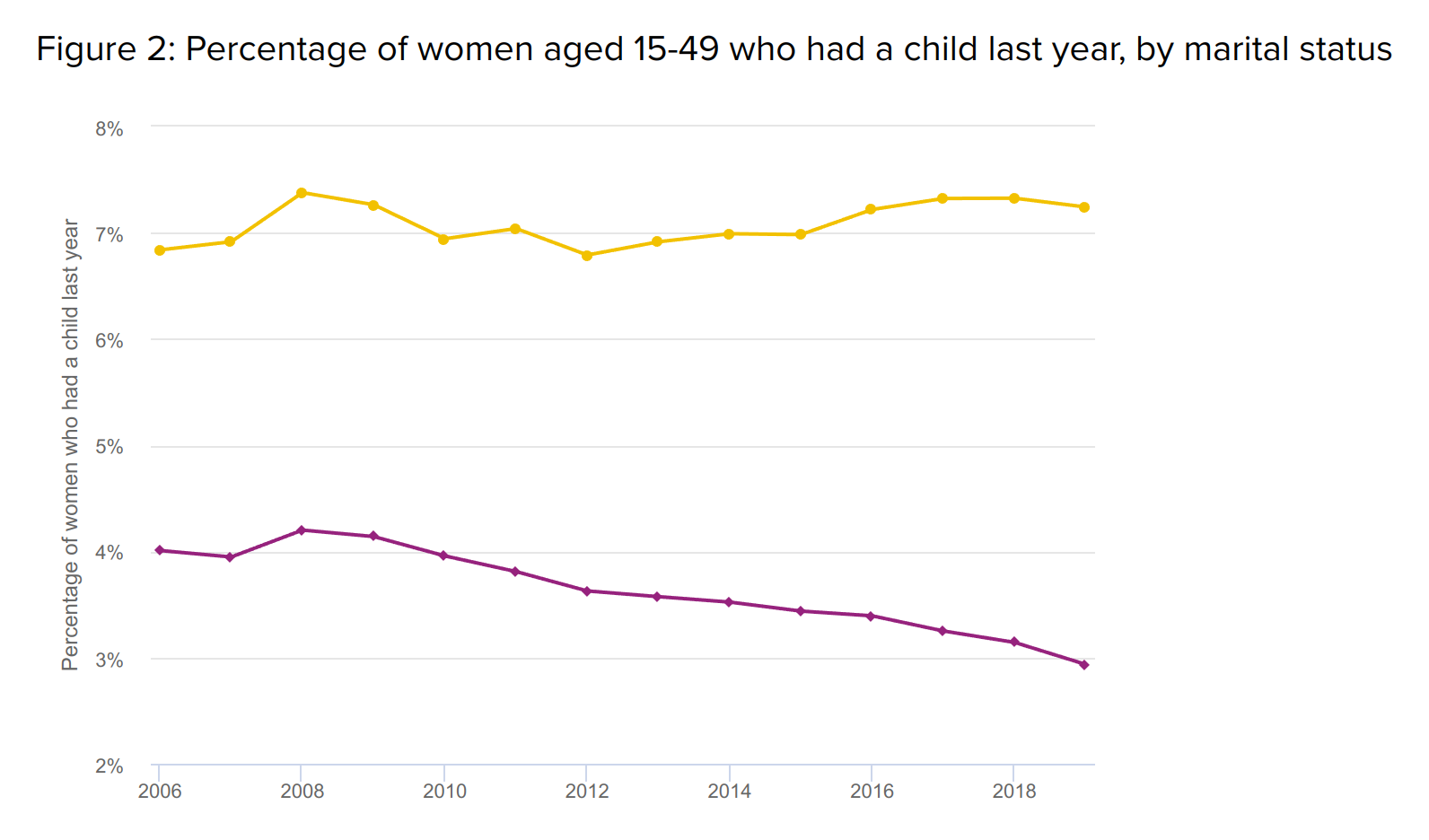 Why the decline? Well, one could say that women have just moved on from the mother role and now find working 40 hours a week and scrolling Instagram more fulfilling: