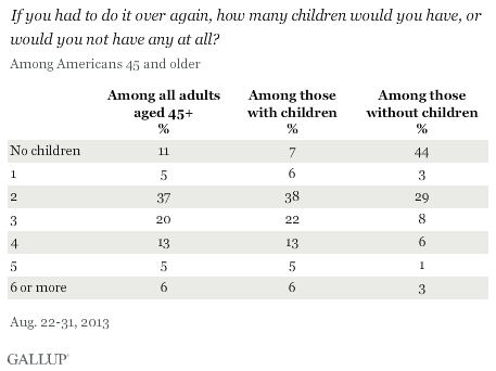 Another way to approach the question is to check whether at end of their reproductive lifespans, parents are happy with the number of children they had (US data 2013):