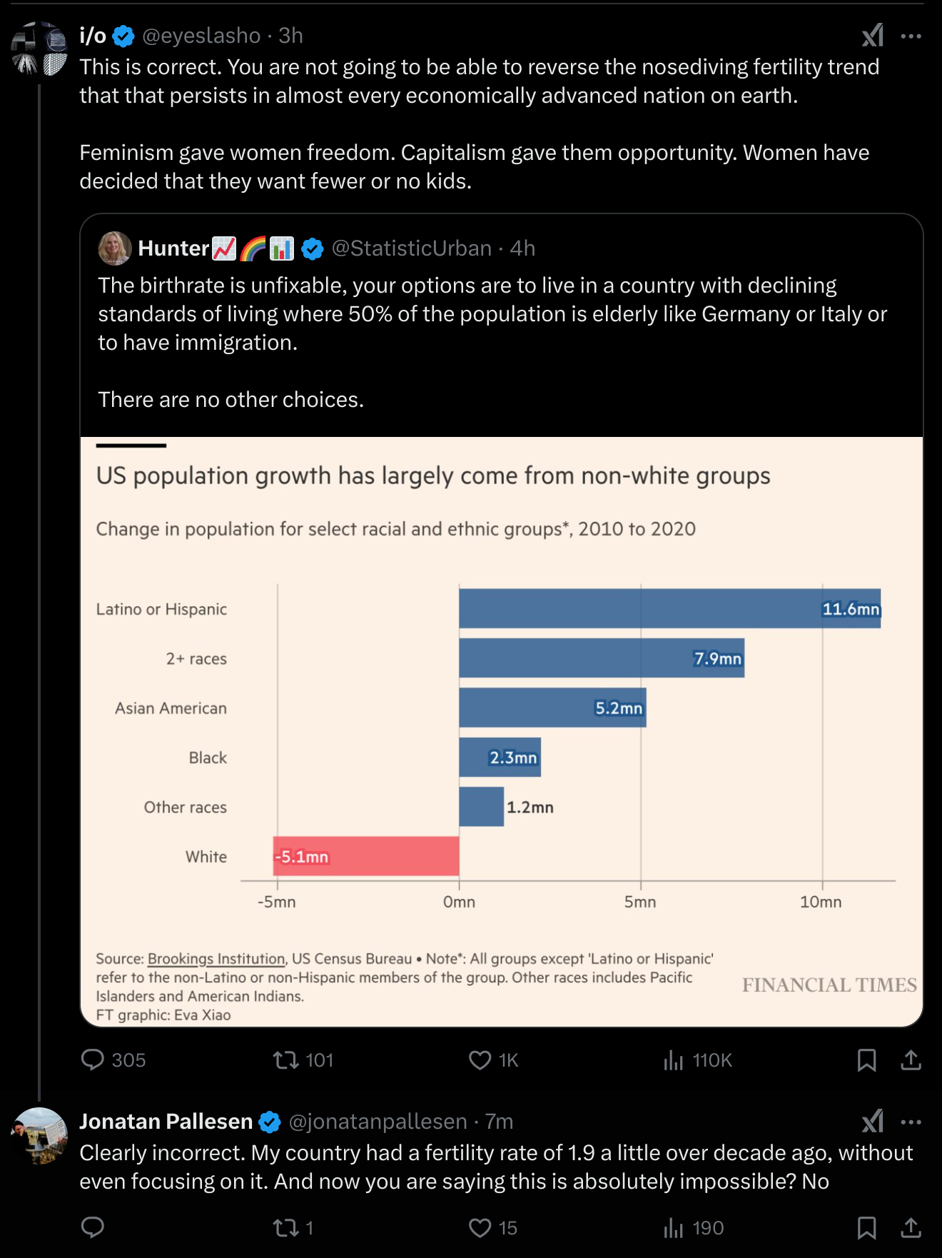 If you are into economics, I know what you are thinking. Their revealed preferences show they don’t really want more children. But not really, because this assumes humans can perfectly optimize for all of their preferences simultaneously and are equally successful in fulfilling them. We have seen that fertility rates are plummeting, but not because of a lack of desire on women’s part. Society is increasingly preventing them in some way or another, making it relatively harder compared to other goals, or introducing too many distractors. This is not something that’s impossible to fix. We aren’t even trying much despite human civilization depending on this. This is crazy.