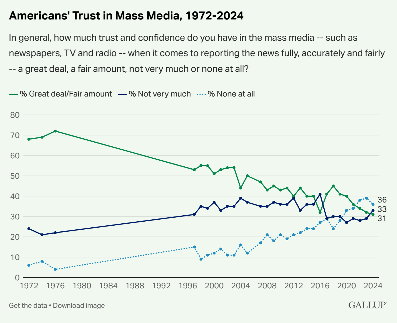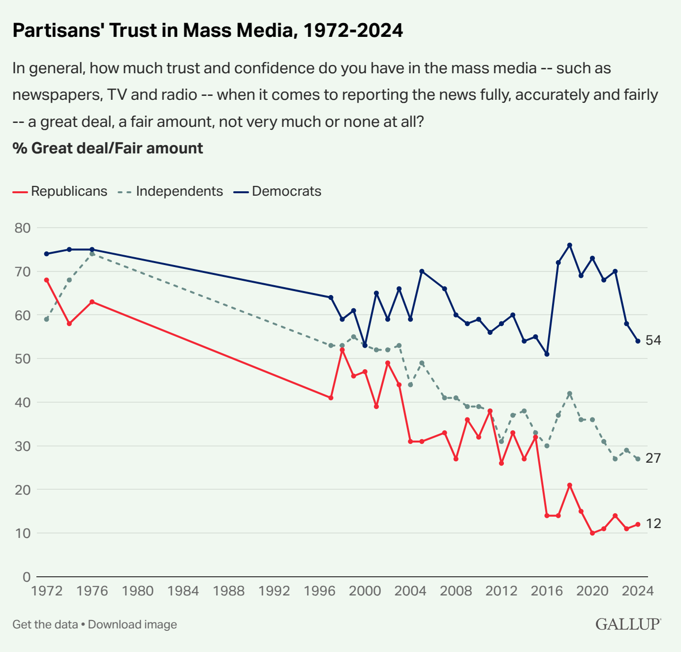 Granted, trusting the media and trusting journalists is not quite the same thing, but probably the same trend would hold. Again, there is no particular COVID pattern to see as the decline was ongoing before that.
