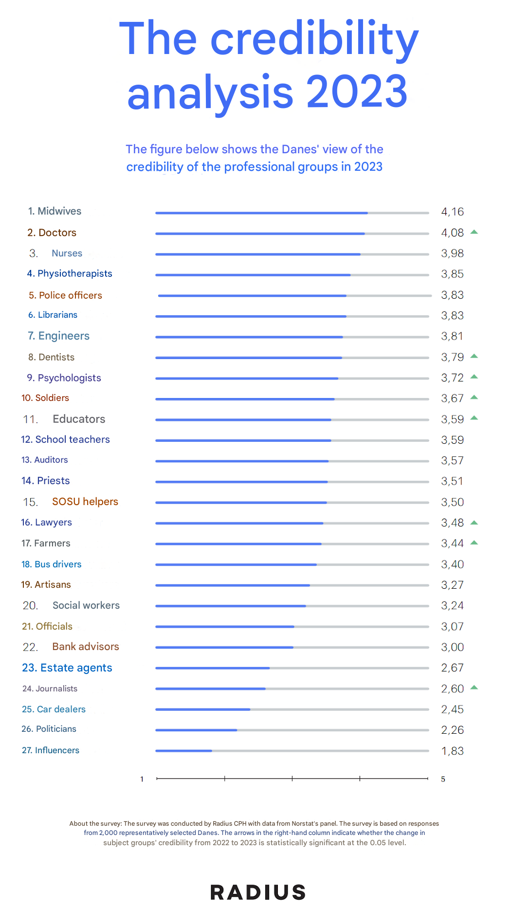 Denmark was not covered by the above study, but there is a similar long-running survey for Denmark (troværdighedsanalysen 2023):