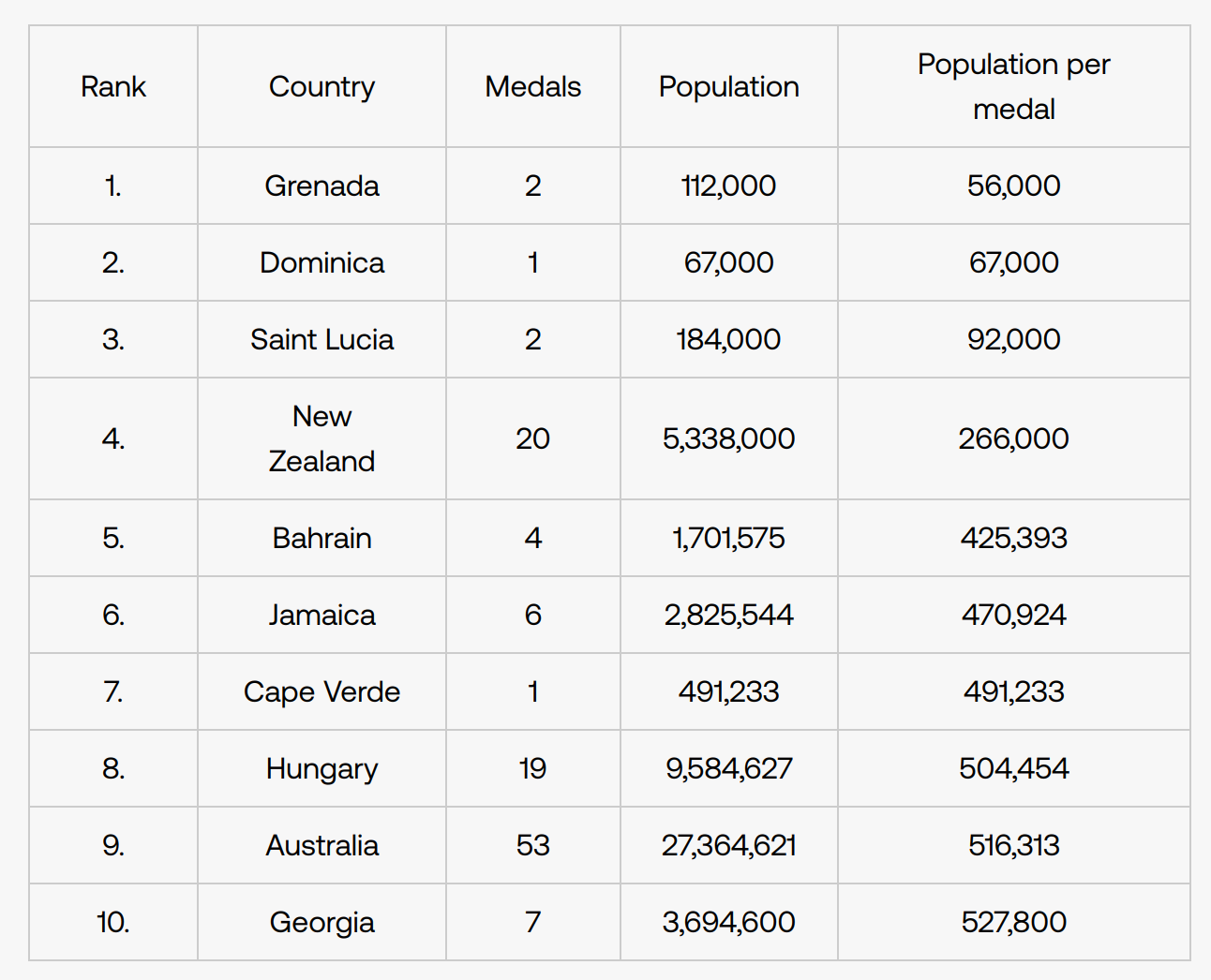 On a statistical note, this is the same kind of statistical problem as when calculating who does best at the Olympics. There’s a lot of writings about that problem. This post presents the raw per capita for 2024 Paris Olympics and we see the familiar small country bias.