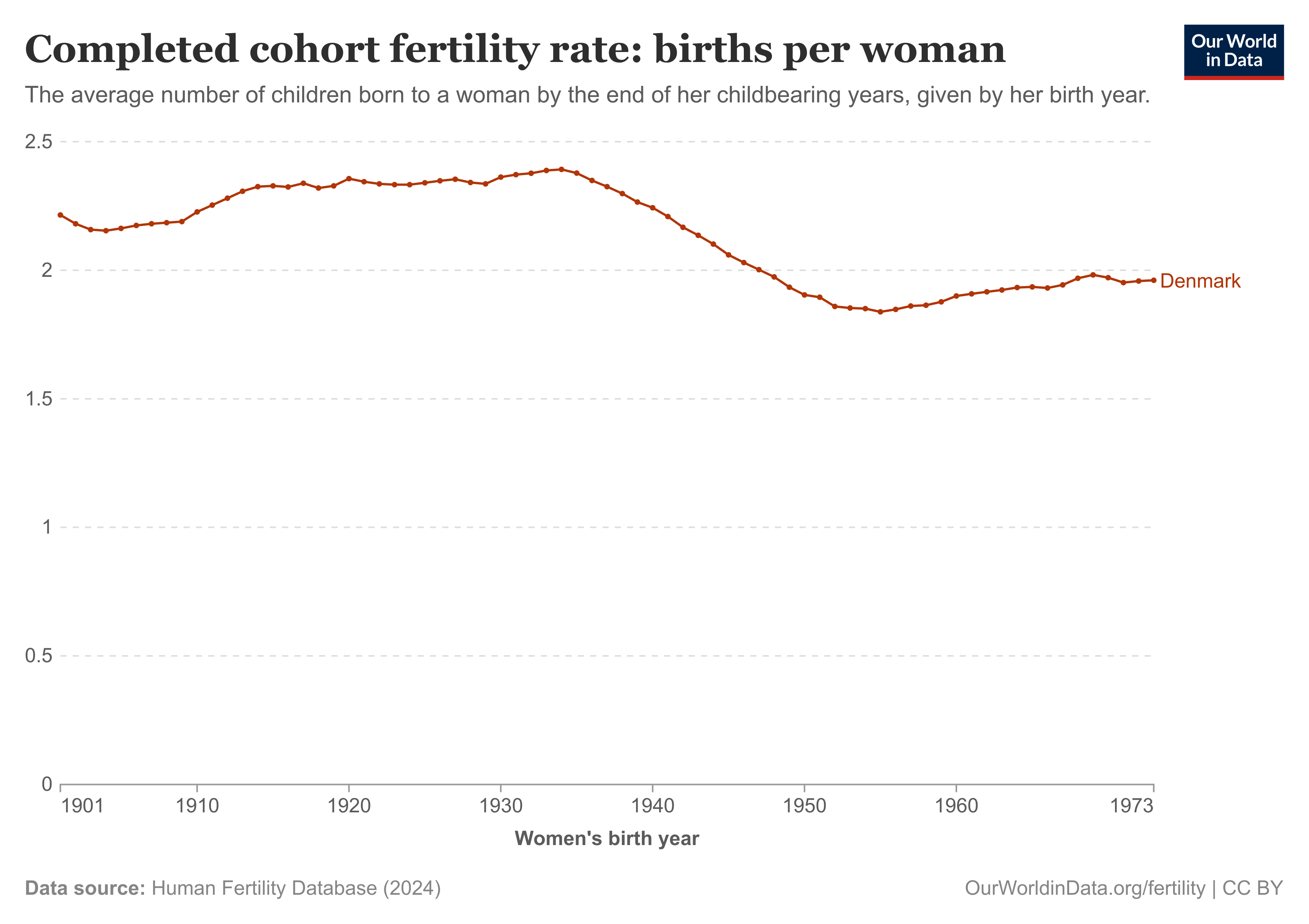 Going back to the Danish situation, So we can look at crude birth rates at cohort fertility rates instead: