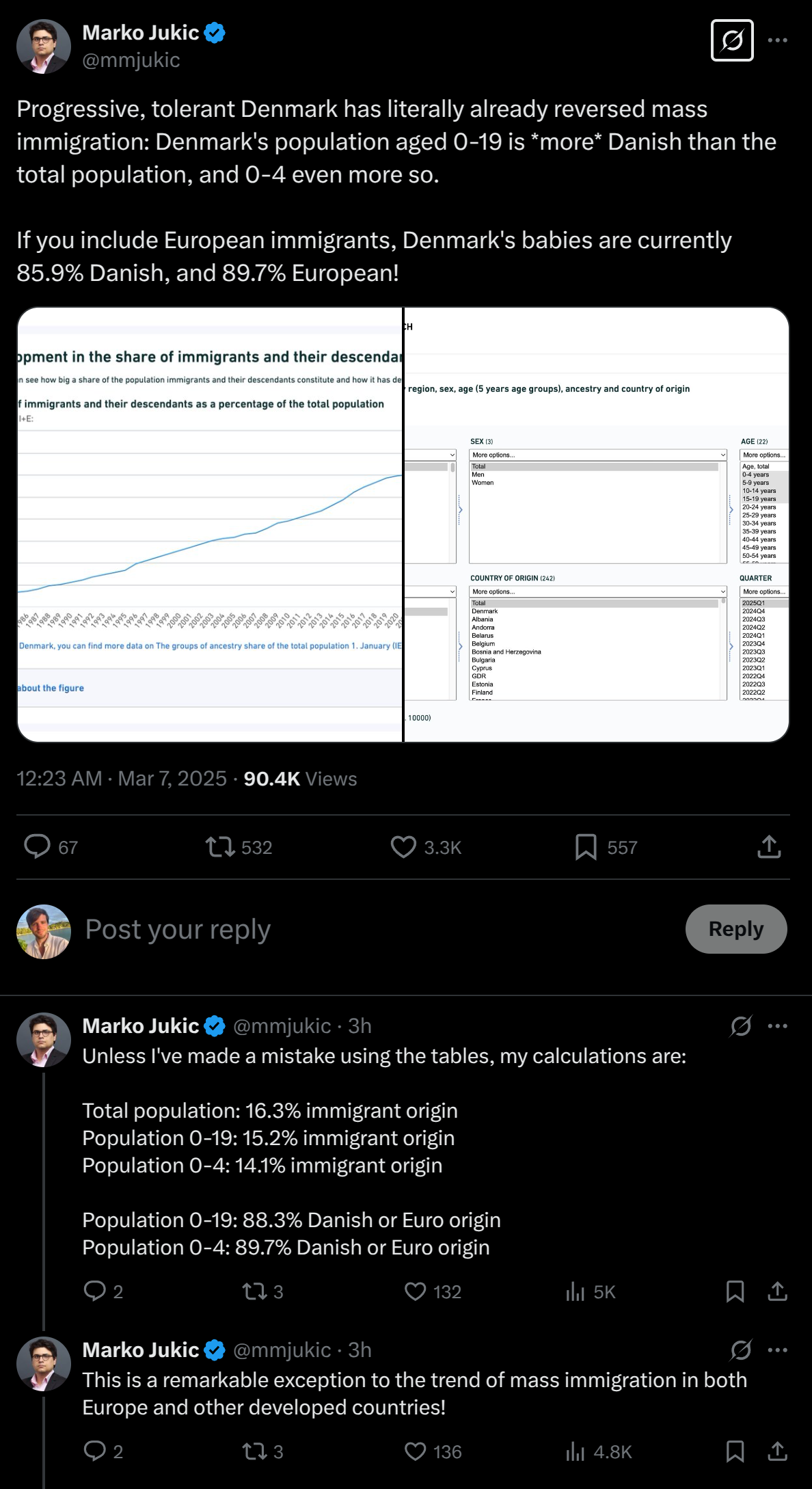 Over on Twitter we have this claim by Marko Jukic about the speed of the Danish population replacement is getting a lot of attention: