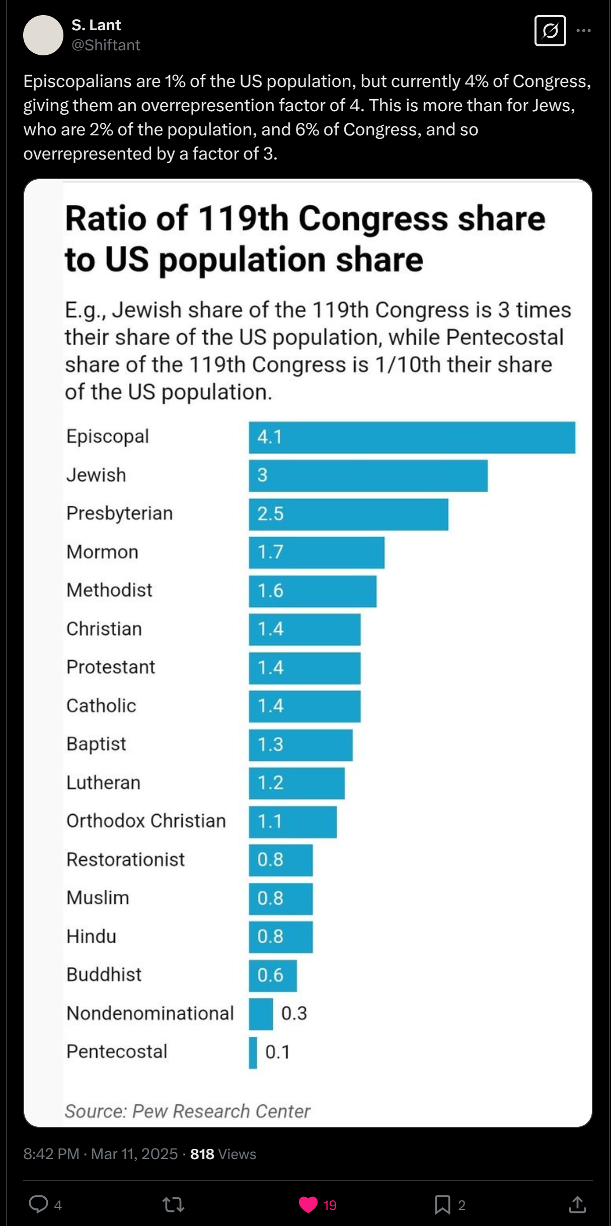 There was that IQ study that showed that Episcopalians were the one religious group with higher IQ than Jews.
