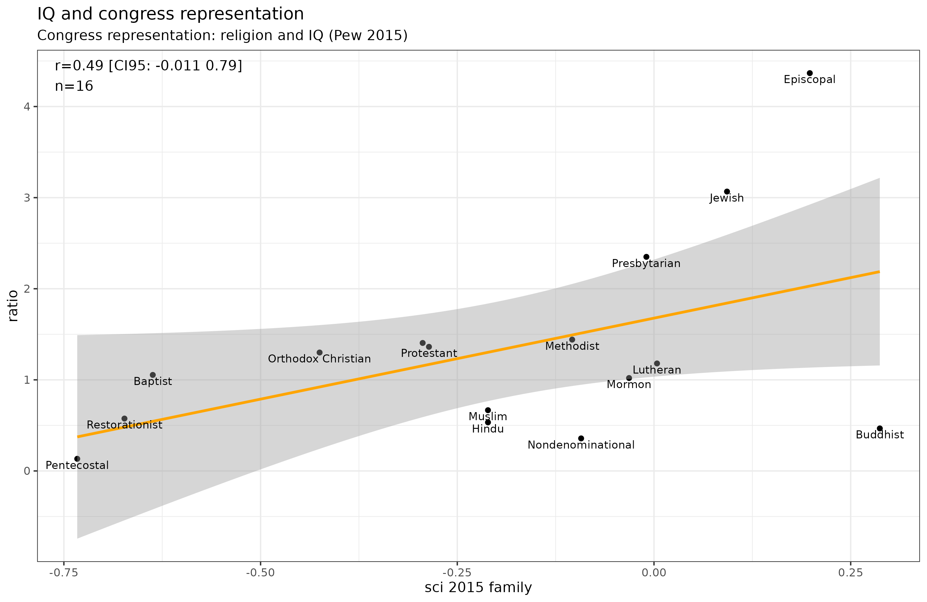 Beware the sample sizes were often bad (e.g. 11 Hindus with science scores) and the overlap in religious categories was not optimal either, and some groups are aggregates (“Christian”). Anyway, if we use the older larger sample size for Whites: