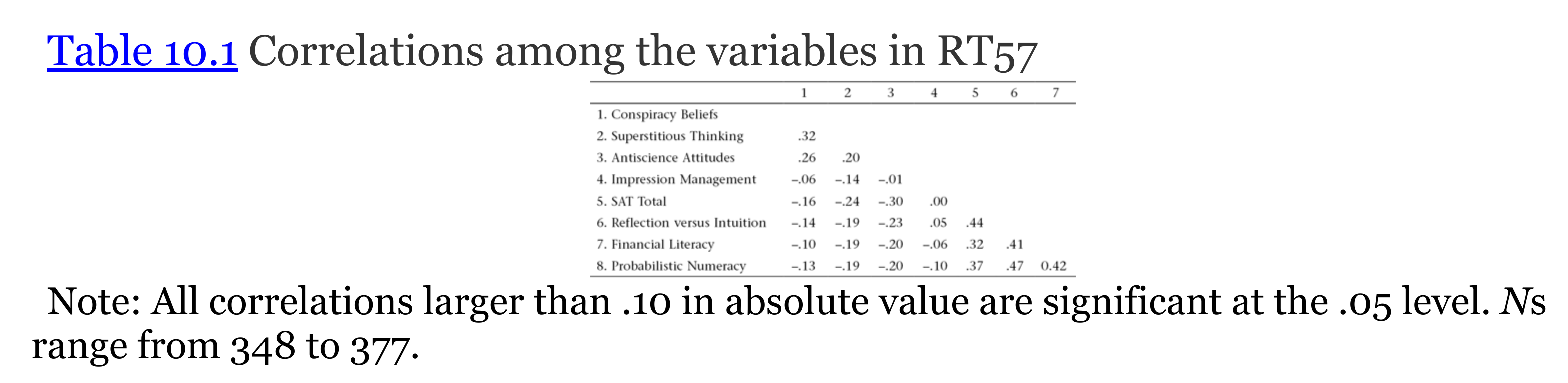 In the second study, part of a longer rationality scale (CART), had 24 conspiracy beliefs: