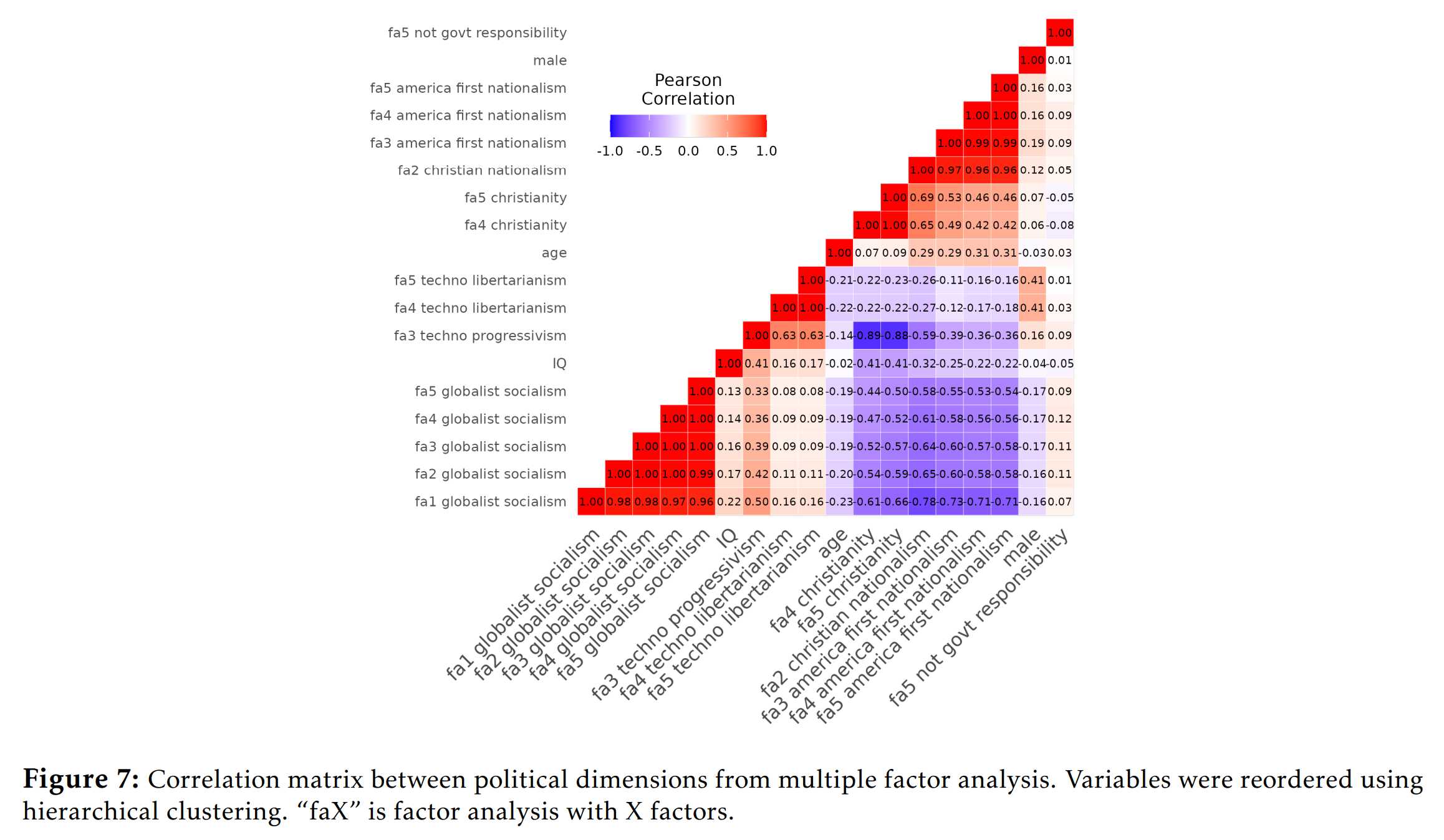 What about using more dimensions of political ideology? One reviewer aptly pointed out that I had written a blogpost saying that political is not uni-dimensional, but here I am analyzing the data assuming that (bad Emil). OK, so I extracted a bunch of more factor solutions with 2-5 factors (correlated factors, oblimin). The 5th factor was a low data-quality factor, but the others were interpretable: