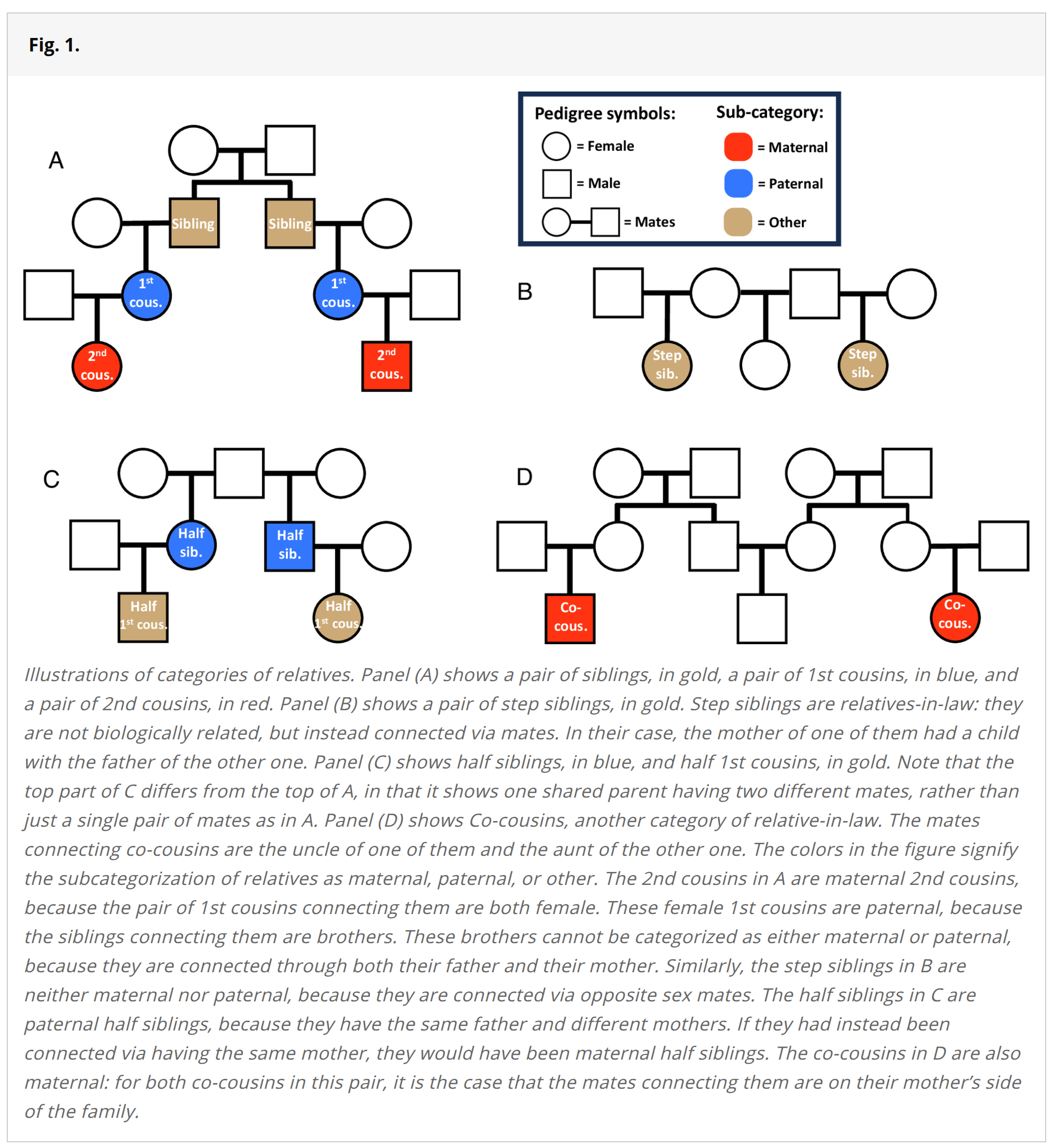 There has long been controversy around the importance of genetic effects in explaining this family resemblance, with opinions ranging from the view that genes are the main reason relatives have similar socioeconomic outcomes, to the view that they play hardly any role. An important contribution to this debate was recently made by Clark (8), who studied an English genealogical database of 422,374 people going back to the 17th century. He reported correlations on socioeconomic outcomes for a wide range of relatives, going out as far as 4th cousins, on outcomes such as occupational status, higher education status, literacy, and dwelling value. To these correlations, Clark fitted models based on theory from Fisher (10), in which only genes can explain similarity between relatives, and found that they could explain his set of correlations almost perfectly, with values of R2 above 0.95. Importantly, these models, which we will refer to as “Fisherian,” account for the effects of assortative mating: the tendency for people to have children with others who are similar to themselves. With random mating, the expected genotypic similarity between relatives rapidly diminishes with increasing genealogical distance, going from 1/2 for siblings, to 1/8 for 1st cousins, and further on to 1/32 for 2nd cousins, meaning that they are about as genotypically similar as random pairings of people, and that they will be predicted to be phenotypically uncorrelated as well, no matter how high the heritability is. But, as Fisher showed, when there is assortative mating, these expected correlations of genetic propensities can start off higher for siblings and drop off less steeply. For distant relatives, they can then be many times higher than under random mating. And the phenotypic correlations reported by Clark were indeed so high that his models estimated genotypic mate correlations at 0.57 to be able to account for them.