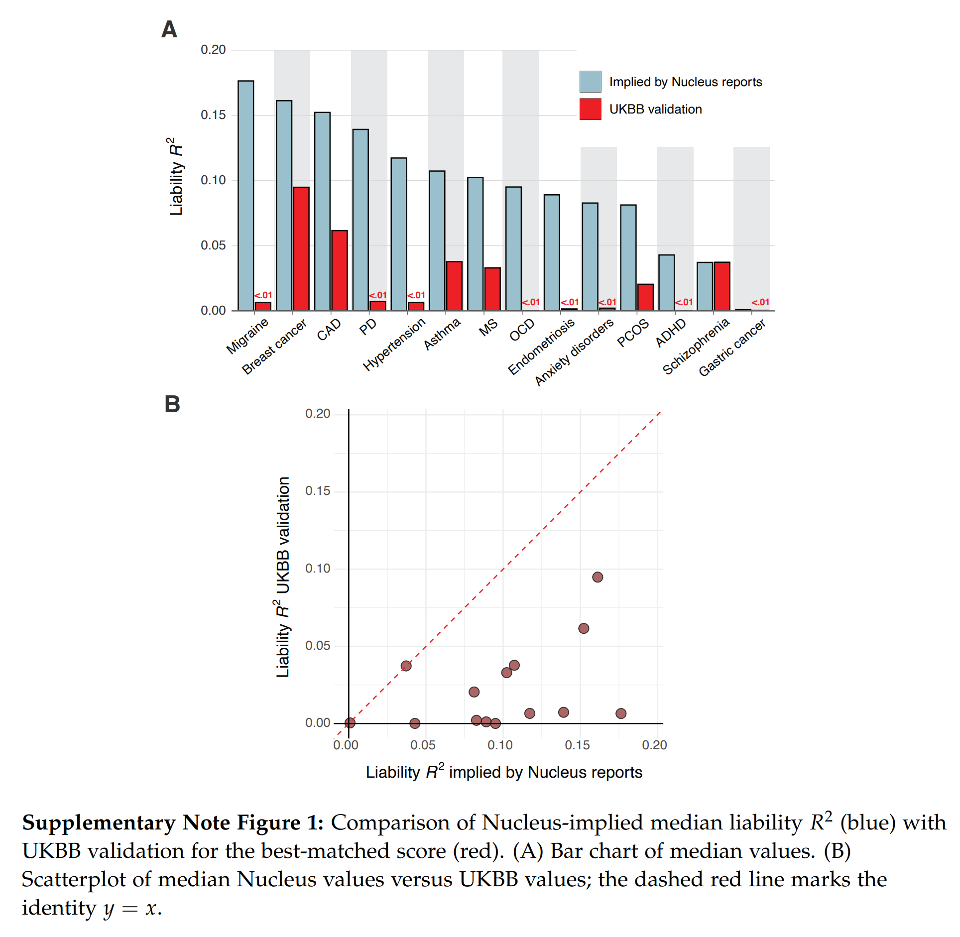 Nucleus gives their customers predictions for embryos like those in the simulator above, but they seem … too good. Herasight took advantage of the fact that these reported probabilities are convertible to liability R2s if one makes assumptions about the prevalences (e.g. diabetes is 15%). Doing this math shows that the models have implausibly high validities, far beyond any competitors or academic results. Using the source code of the forgone impute.me website (which is archived on certain Github mirrors), it is possible to check whether their current models are the same as those from years ago. Some of these models are downright shoddy, based on only ~12 SNPs! They find that this is mostly the case, meaning that Nucleus has done very little additional R&D before public. And they did this with bad models, but then incorrectly specified them, making them seem much more accurate than they are. In the end, this misleads customers into making wrong decisions (you think you are reducing breast cancer by 20%points, but in reality, it may be 5%points and you should have picked a different embryo). Hopefully, few people have used their service as it is at this time. They have a huge budget (raised >30 million USD!). There are further impossibilities, such as a customer report showing an embryo an elevated polygenic score for ADHD, but somehow has a below average estimated risk. This is just mathematically impossible. Due to these issues, it would make no sense comparing the implicitly claimed validities by Nucleus with the more reliable estimates from Genomic Prediction, Orchid, and Herasight.