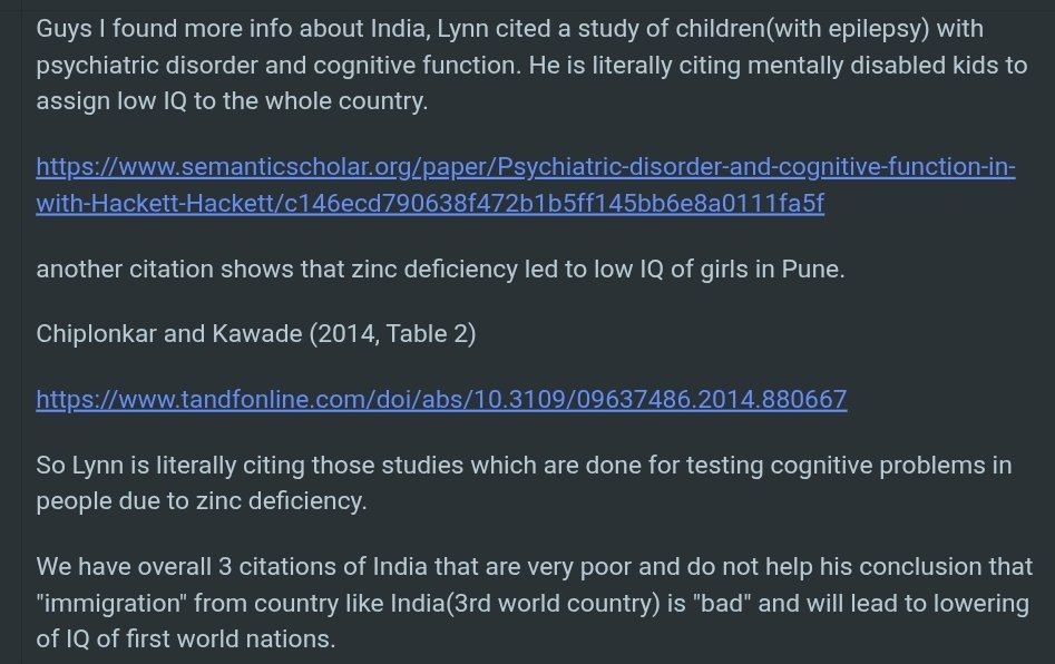 Obviously, then, one cannot be accused of cherry picking unrepresentative poor people if this problem is in fact common in that country. One must use roughly representative studies which in poor countries means those with various health deficiencies uncommon in developed countries. We can name this the Wicherts fallacy, after Wicherts et al made the same mistake a number of times in their 2010 series of papers (with respect to Wicherts who is a great researcher). In any case, the simple mean of the Chiplonkar & Kawade samples is 75.8 IQ and the mean of the other samples is 73.0 IQ, so the sample they set out as being particularly low status and unfair is in fact above the average of the other samples. This kind of lazy criticism is the norm from such people.