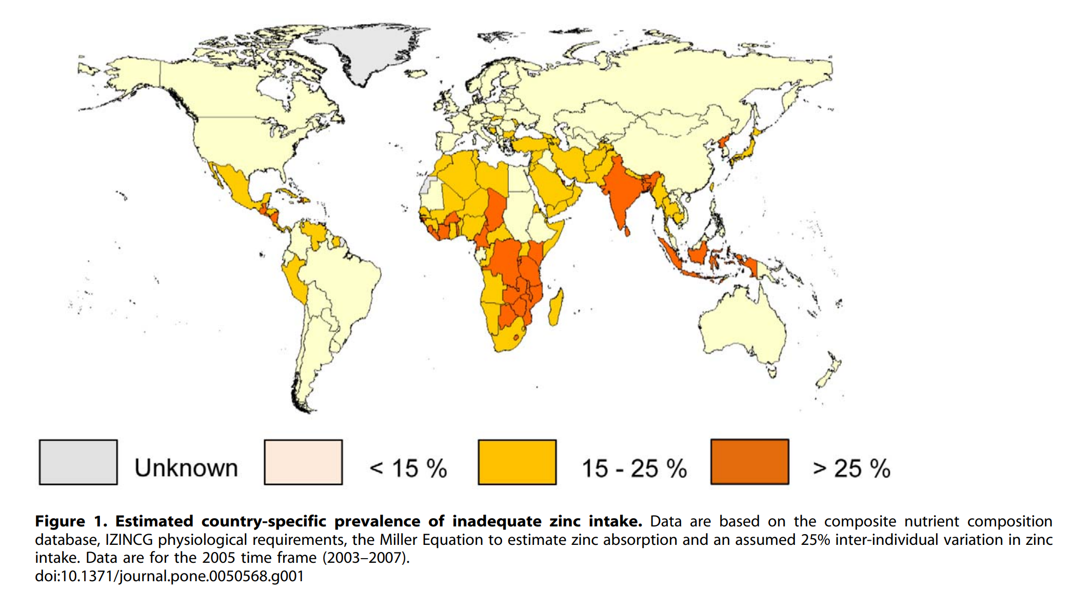 This kind of thing is common with poor countries. Why cite data from a study of zinc deficient children? Because that’s the data that exist. Zinc deficiency is common in poor countries, so these children are not particularly unrepresentative. We can look up a global study of zinc deficiency from 2012 and it found that ~30% of Indians are zinc deficient: