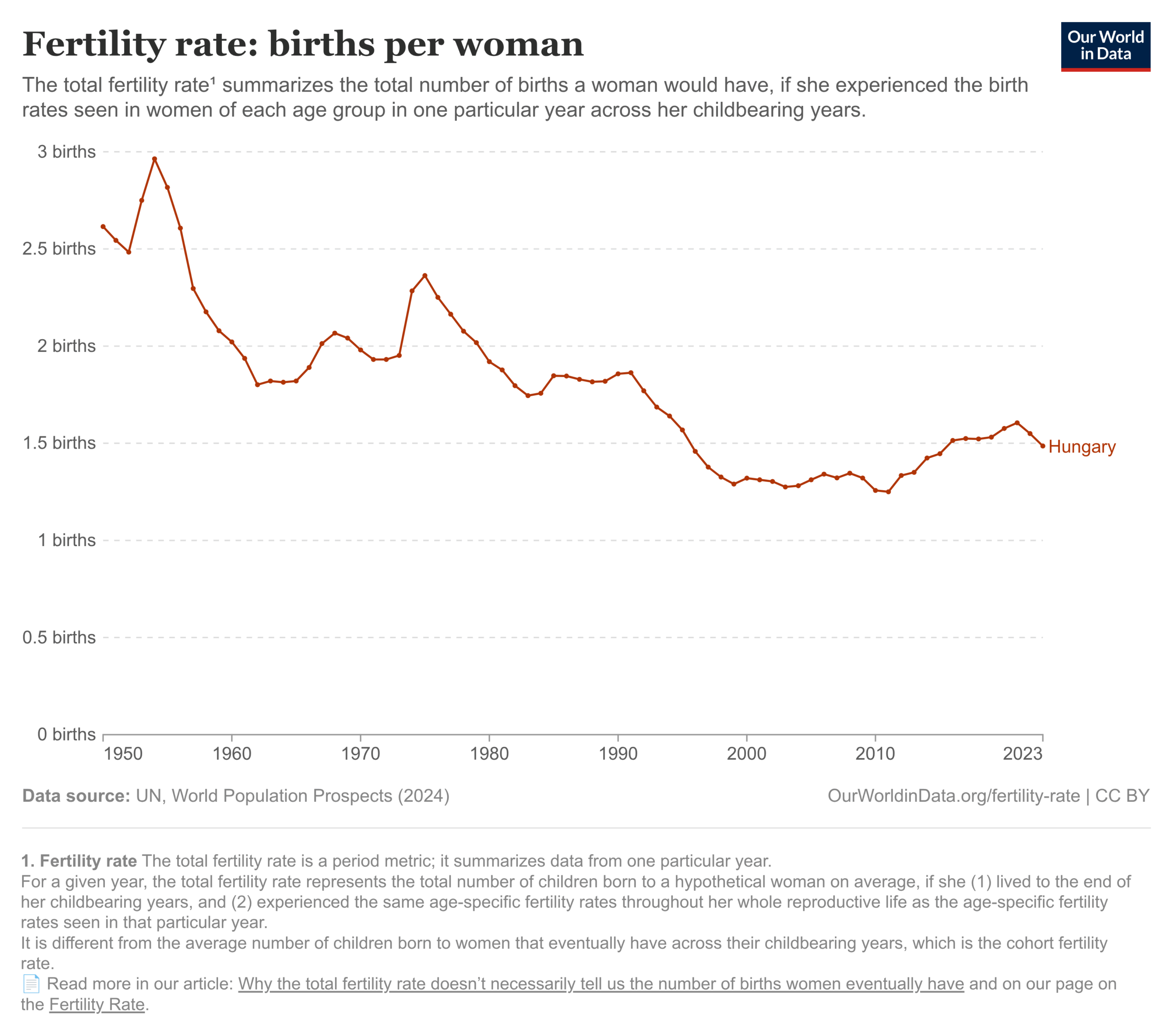 Since Hungary is often making the news for their fertility policies, let’s look at Hungary’s data: