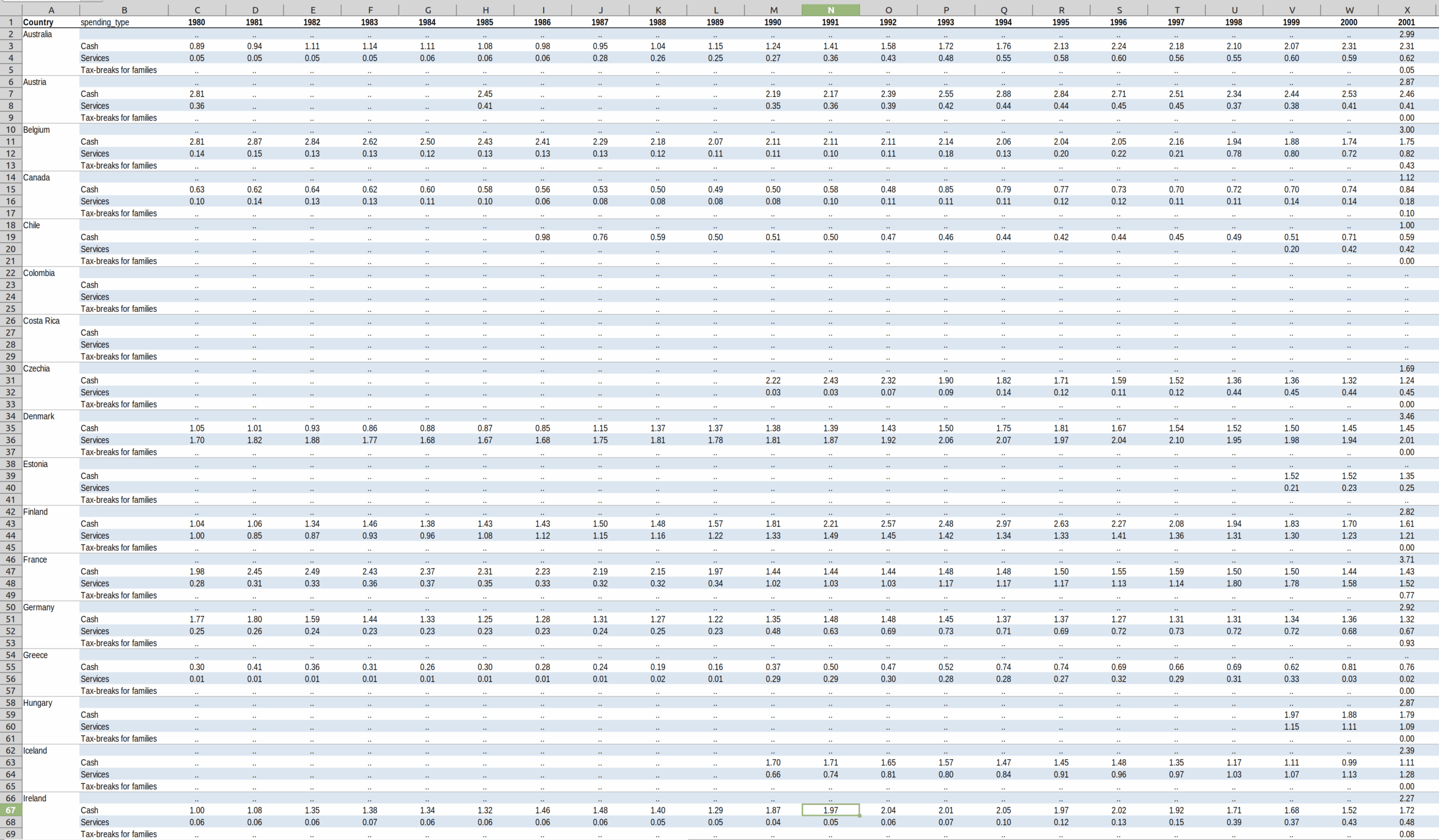 One thing here is that tax deductions aren’t included because they aren’t government spending, but government foregoing revenue. OECD does track this elsewhere, but apparently not in this database. However, one can find some Excel files and PDFs with the data: