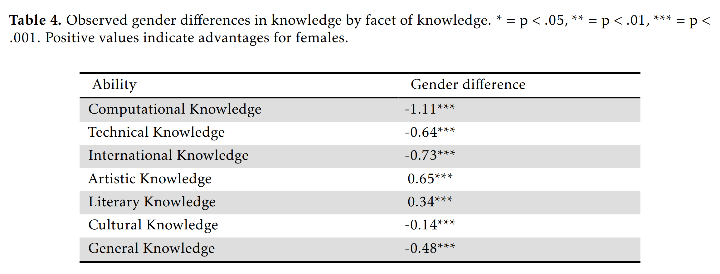 So we just see the same findings but more directly, women know more about art and literature, but less about everything else. The difference is particularly large for computer-related knowledge (1.1 d), surprising no one. The combined effect of the item biases was roughly nothing because there were many items favoring both sexes and their effects canceled out.