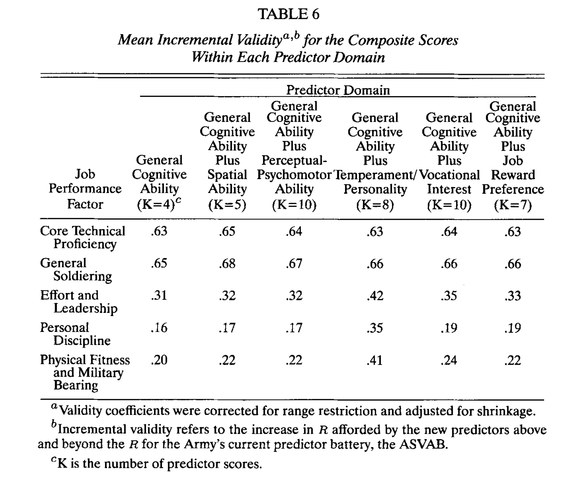 In this study tried a large number of additional cognitive tests grouped into various domains (spatial, perceptual etc.), and looked at the degree to which various military job performance measures could be predicted in advance (2 years after the cognitive testing). The first column shows g alone (the overall composite single value), and the other columns show g + [other ability]. The gains from adding additional non-g variables are pretty small, bordering on nonexistent. In other words, non-g abilities do not predict military job performance much, even using tests specifically designed to measure extra abilities not captured before thought to be relevant. These results come from a single large study of 1000s of military subjects, so there is no doubt one can throw on this based on meta-analytic correction methods (like the recent debate was about).