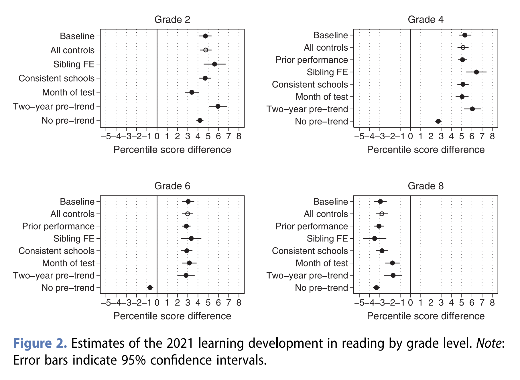 We find no evidence of a major learning loss. While pupils in grade 8 experienced a three percentile points loss in reading performance, pupils in grades 2 and 4 experienced a learning gain of about five percentile points, possibly resulting from school closures being significantly longer among older (22 weeks) than younger children (eight weeks).