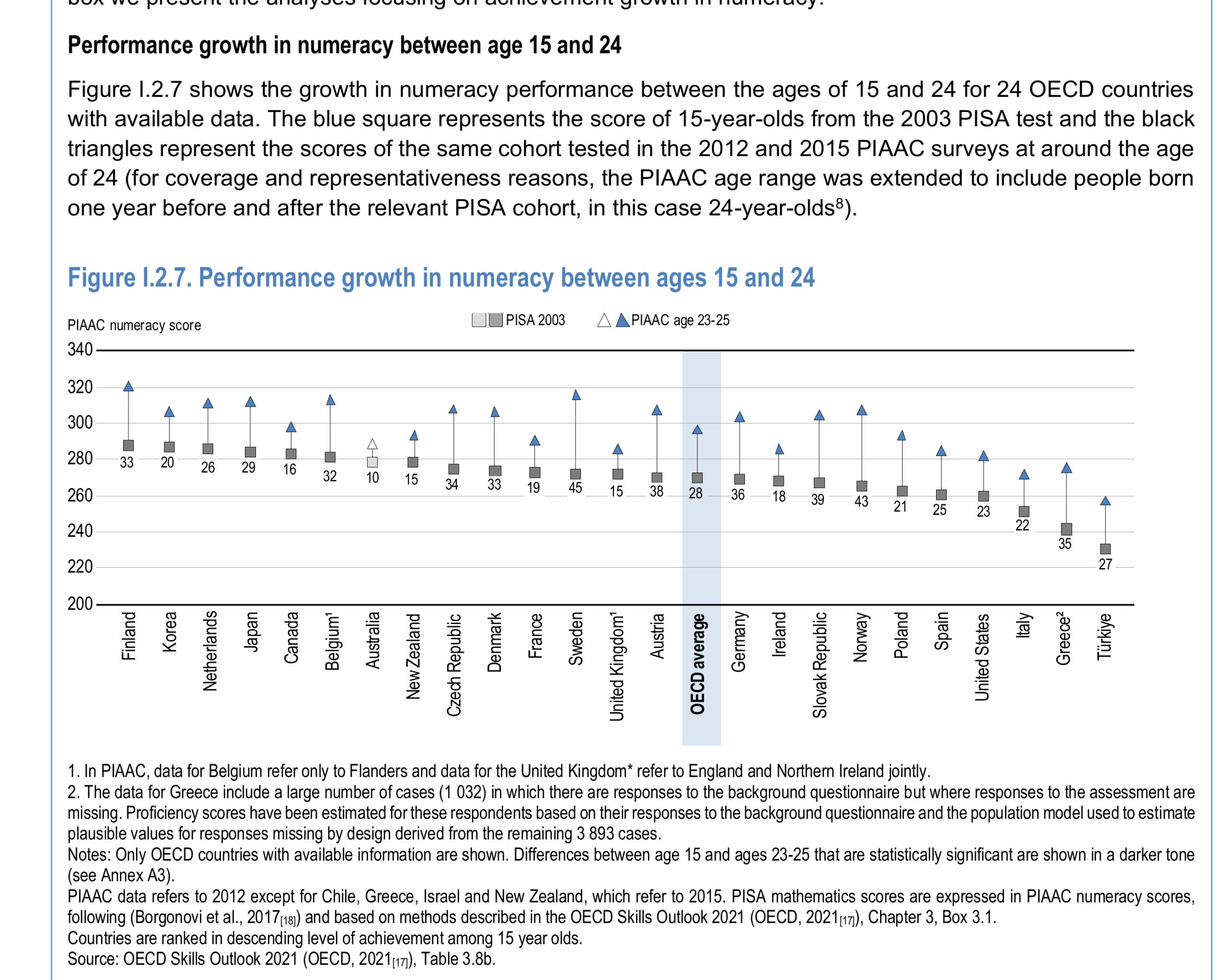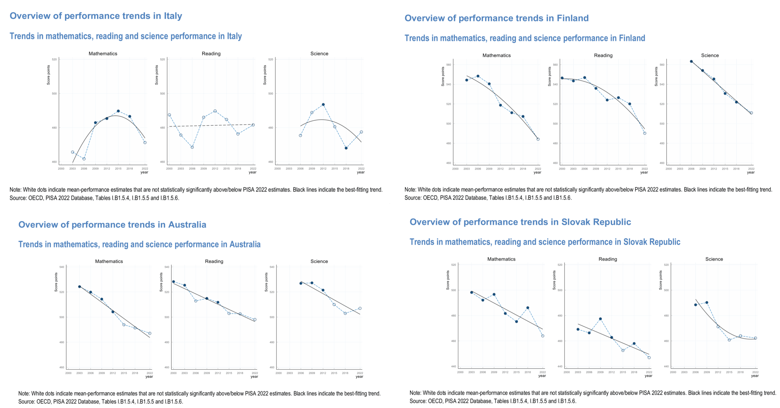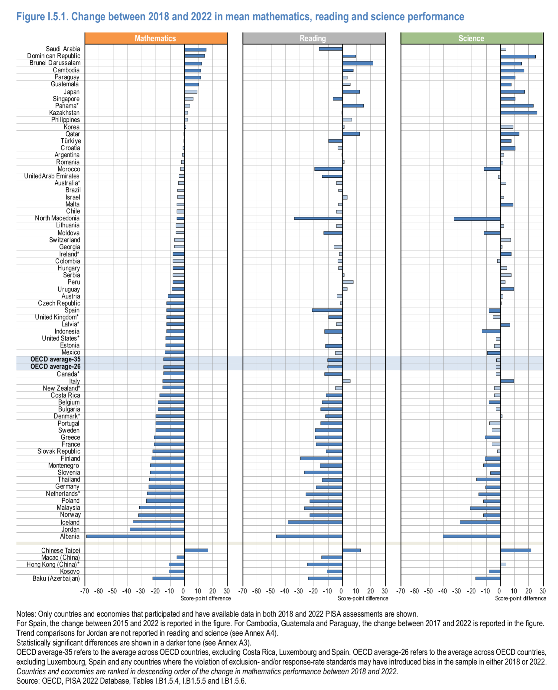- PISA 2022 shows a big decline for OECD countries since 2018.
